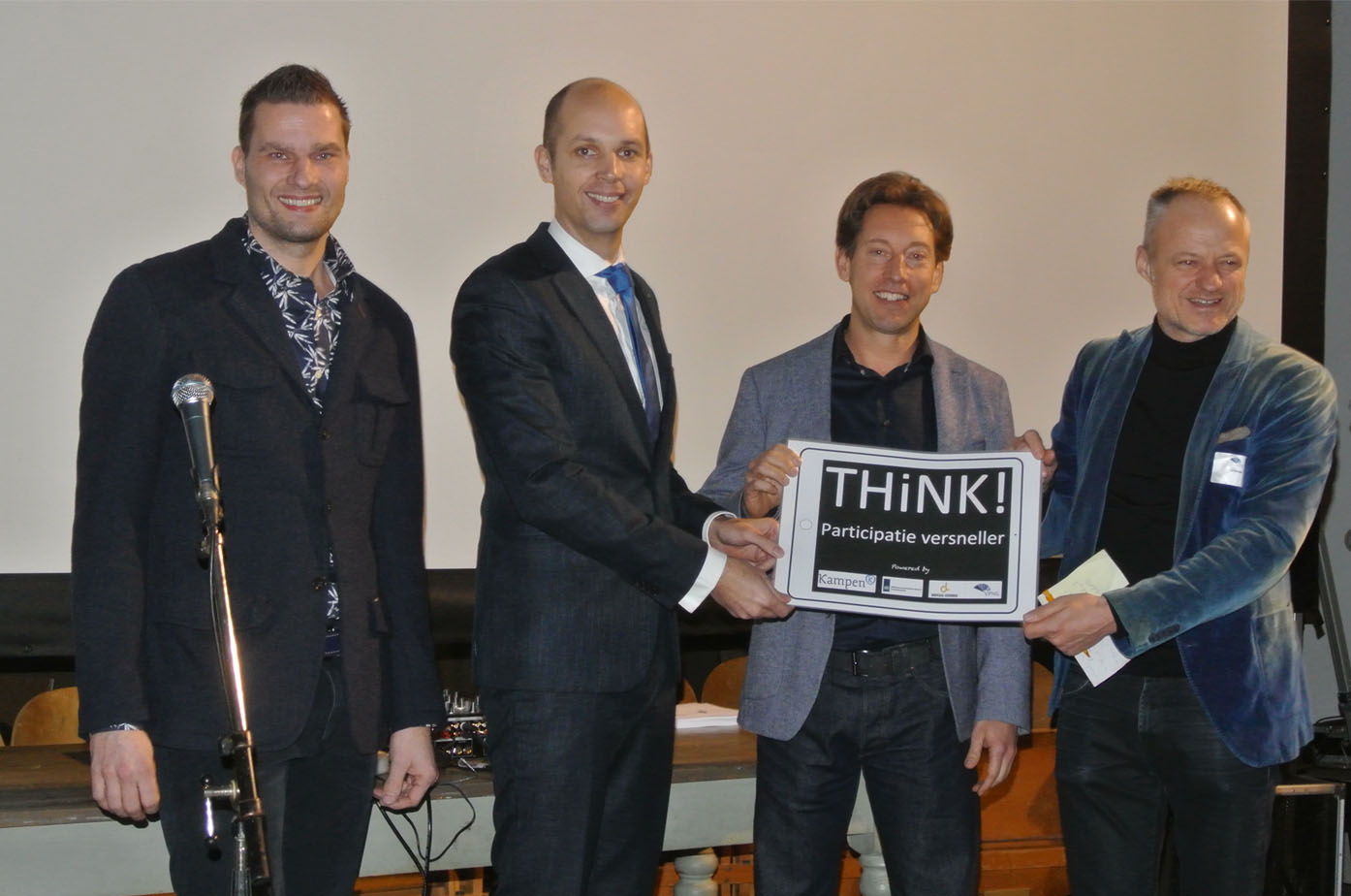 Tijdens een fantastische dag met ruim 150 raadsleden raadsgriffiers, gemeentelijk communicatie adviseurs, project, proces en programmamanagers heeft de gemeente Kampen in de persoon van Wouter Bosch (initiatiefnemer van de app), samen met wethouder Geert Meijering de participatie versneller app THiNK! overhandigd aan Co Verdaas, hoogleraar gebiedsontwikkeling en Francois van Doesburg voorzitter VPNG.
