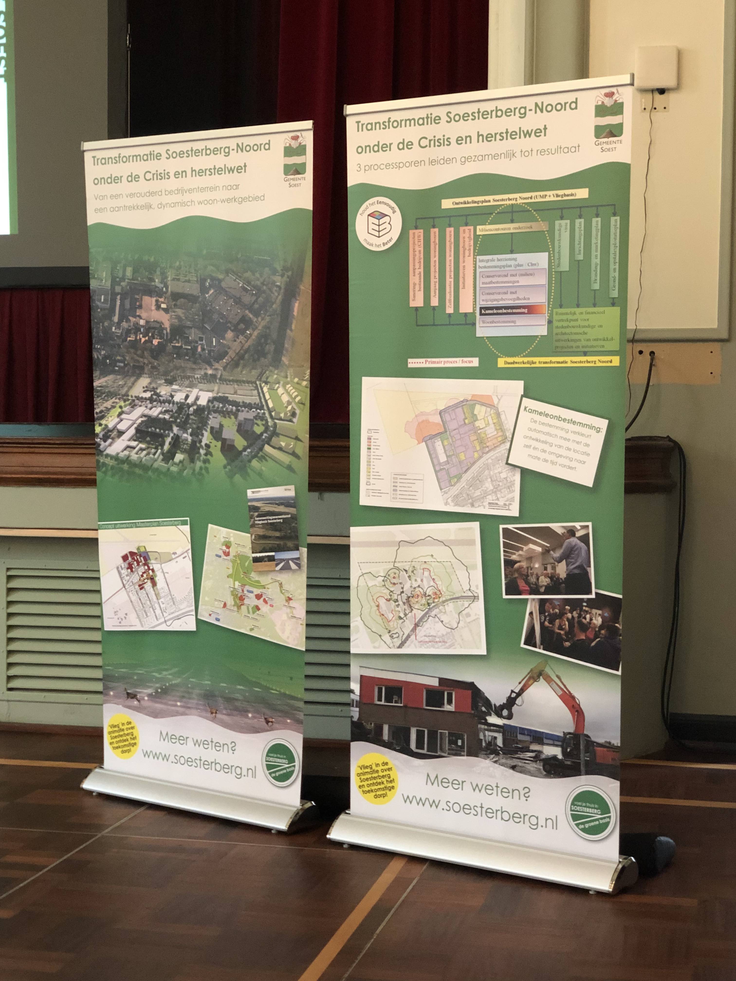 Soesterberg was duidelijk toe aan een nieuw hoofdstuk en leek te gaan lijden onder de weggevallen dynamiek van een vliegbasis. Toch werd de vlucht voorwaarts gevonden. Mustafa Hamurcu en Reinier Kalt beten zich vast in deze vlucht voorwaarts. Jarenlang plannen maken en met het dorp aan tafel gaan, heeft nu geleid tot een uitbreiding richting het voormalig vliegveld, uitplaatsing van bedrijven naar een nieuw bedrijventerrein, natuurontwikkeling en een campus als dorpshart met behoud van de winkelstraat en de zo belangrijke voorzieningen voor een leefbaar dorp. Evert ten Kate van Ondernemers Netwerk Soesterberg vertelde hierbij hoe zij vanuit de ondernemersvereniging hun visie bij de gemeente konden neerleggen. En natuurlijk dat er ook hier niet altijd gelijk overeenstemming was.