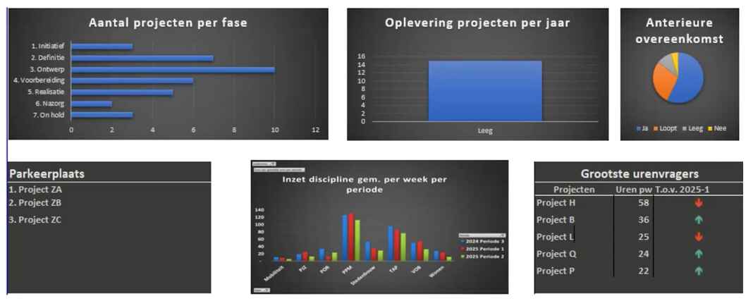 Deze analyses verschillen per programma. Openbare ruimte wil bijvoorbeeld sterk sturen op versnelling en achterstanden. Wonen kijkt nadrukkelijk naar kostenverhaal en mijlpalen. Duurzaamheid heeft weer andere accenten.