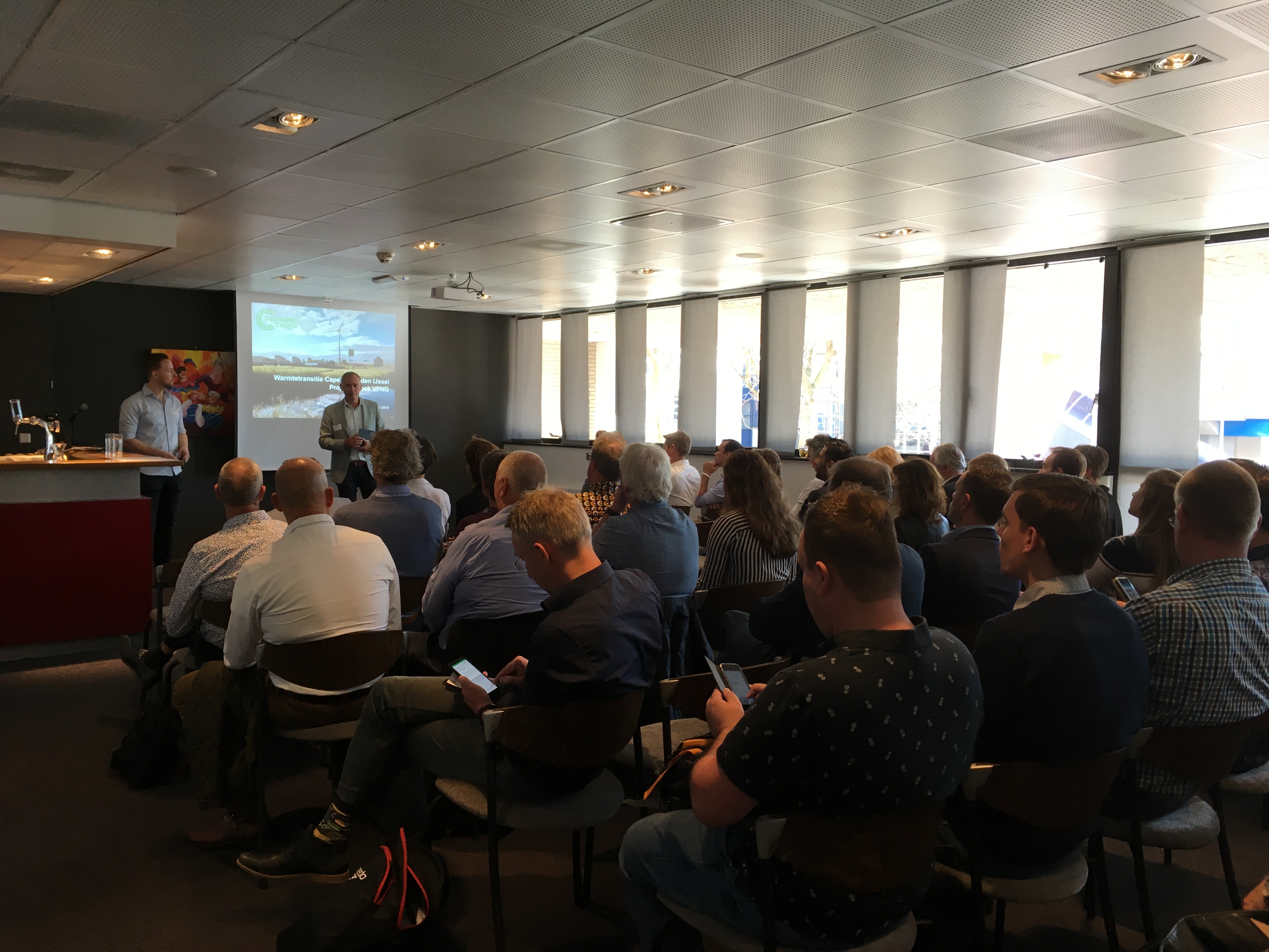 Programmamanager Patrick Bakker had op 11 oktober een groep van bijna 60 nieuwsgierige collega's tegenover zich. Capelle aan den IJssel is dan ook de eerste gemeente die hun aanpak in de Themagroep Energietransitie op tafel legde. Daarnaast had hij ook de netbeheerder en woningstichting bereid gevonden om ook hun kant van het verhaal in de warmtetransitie toe te lichten. Een rijkgevuld programma dus.